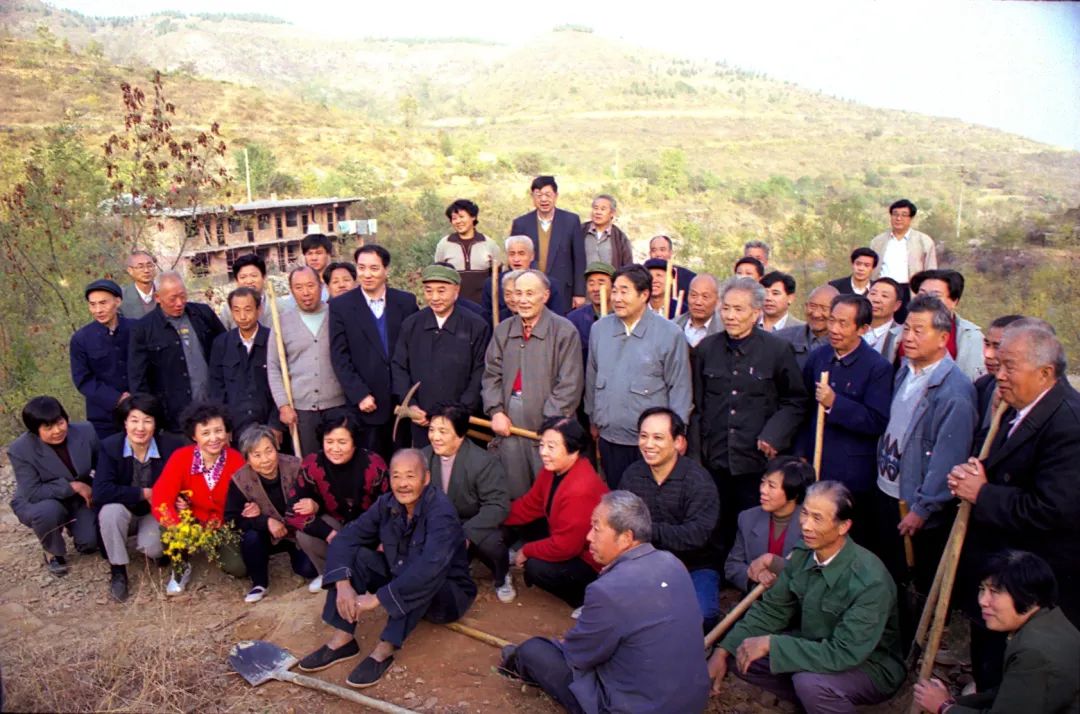 图为***新闻记者、新华社原社长穆青在辉县参加植树劳动。